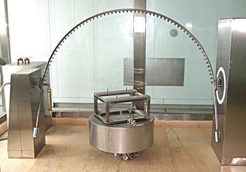 (3)IPX 3 方法名稱:淋水試驗 試驗方法: a。 擺管式淋水試驗 試驗設備:擺管式淋水濺水試驗裝置 試樣放置:選擇適當半徑的擺管,使樣品臺面高度處于擺管直徑位置上,將試樣放在樣臺上,使其頂部到樣品噴水口的距離不大于 200mm ,樣品臺不旋轉。 試驗條件:水流量按擺管的噴水孔數計算,每孔為 0。07 L/min ,淋水時,擺管中點兩邊各 60° 弧段內的噴水孔的噴水噴向樣品。被試樣品放在擺管半圓中心。擺管沿垂線兩邊各擺動 60°,共 120°。每次擺動( 2×120°) 約 4s 試驗時間:連續淋水 10 min b。 噴頭式淋水試驗 試驗設備:手持式淋水濺水試驗裝置 試樣放置:使試驗頂部到手持噴頭噴水口的平行距離在 300mm 至 500mm 之間 試驗條件:試驗時應安裝帶平衡重物的擋板,水流量為 10 L/min 試驗時間:按被檢樣品外殼表面積計算,每平方米為 1 min (不包括安裝面積),最少 5 min