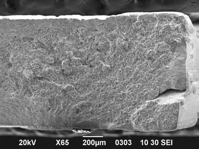 斷口的顯微分析是通過光學顯微鏡和掃描電鏡來實現的。由于景深的限制,光學顯微鏡只能粗略的觀察解理斷口和疲勞斷面等較平整的斷口,而不能觀察具有明顯塑性變形的穿晶斷口和沿晶斷口,即使對平整斷口也很難進行大面積的連續觀察而且分辨率低。但是光學顯微鏡能對斷口上某些組織結構進行偏振光分析,還可以觀察斷口不同區域的顏色變化,這對斷裂性質的診斷具有重要的作用。掃描電鏡景深很大,可以研究粗糙的斷口表面,且可以獲得清晰的圖像。放大倍數可以連續在10倍到10萬倍之間變化,便于對斷口細節進行觀察。