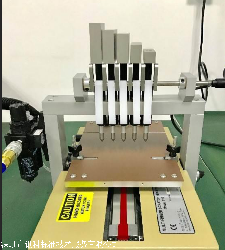 主要檢測汽車內(nèi)、外飾件中平滑、紋路塑料飾件的耐磨性。除了材料和產(chǎn)品的開發(fā),也適用于質(zhì)量的控制。五指刮擦/劃傷測試儀的設(shè)計(jì)是為塑料材質(zhì)評估、堅(jiān)硬材質(zhì)耐磨、油漆、油墨、軟金屬、油地毯、附加件和其它材質(zhì)的檢測