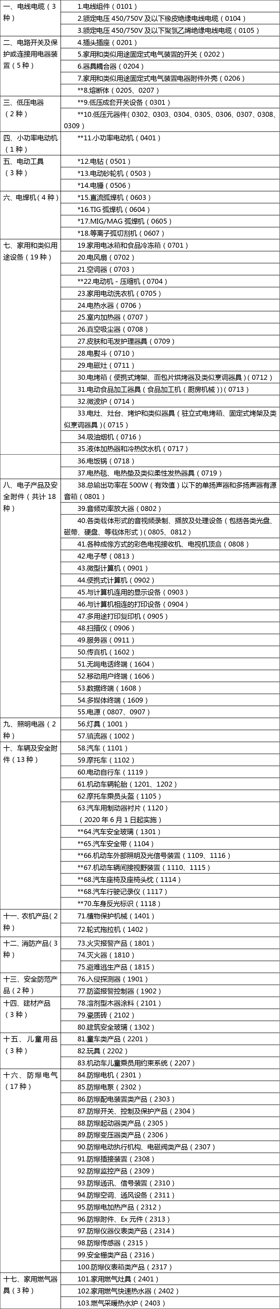 2020年4月21日,為進一步深化強制性產品認證制度改革,市場監管總局(認監委)根據歷次強制性產品認證目錄調整情況,在不改變強制性產品認證實施范圍的基礎上,對目錄內部分產品種類進行歸并和優化。優化后的強制性產品認證目錄共17大類103種產品,為便利各相關方準確界定強制性產品認證目錄范圍,市場監管總局(認監委)重新修訂《強制性產品認證目錄描述與界定表》(見附件),一并予以公布。《國家認監委關于發布強制性產品認證目錄描述與界定表的公告》(認監委公告2014年第45號)同時廢止。
