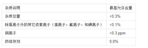鹽溶液應通過把5+/-1質量份氯化鈉溶解到95份水中來制備,水全都必須符合D 1193 試劑水規(guī)格中Ⅳ型水的要求(鈉離子可以不管,只要氯離子含量在本規(guī)程范圍內就行)。應注意鹽的化學成分。使用的鹽應為氯化鈉,其中雜質總含量不得超過0.3% (質量)。除氯離子外的其它鹵素離子(溴離子,氟離子,和碘離子)的含量應低于鹽含量的0.1% (質量)。銅離子含量應低于0.3 ppm (質量)。不得使用含防結塊劑的氯化鈉,因為防結塊劑會起抗腐蝕劑作用。表1列出了鹽中雜質的最高允許含量。在買賣雙方協議的基礎上,可要求對上述化學組成中未做規(guī)定的元素或化合物進行分析,確定最高允許含量。