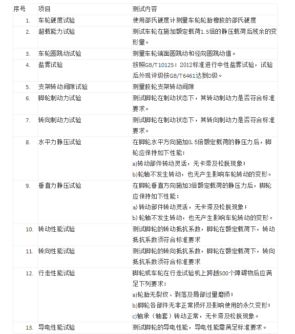 測試標準:GB/T14687-2011工業腳輪和車輪二.范圍: