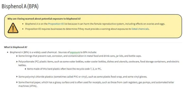 美國加州65提案,全稱為《1986年飲用水安全與毒性物質(zhì)法案》,旨在減少消費品中的致癌和生殖毒性物質(zhì)以保護消費者健康和環(huán)境安全。根據(jù)加州65提案規(guī)定,化學(xué)物質(zhì)列入管制化學(xué)物質(zhì)列表12個月后,如果產(chǎn)品中含有這些化學(xué)物質(zhì)且對消費者造成暴露風(fēng)險,企業(yè)需張貼警告標(biāo)簽,否則可能面臨訴訟、高額賠償?shù)蕊L(fēng)險。