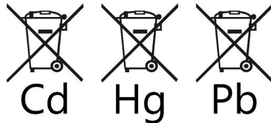 電池標(biāo)簽代表一個(gè)打叉的帶輪垃圾箱,適用于所有電池、蓄電池和電池組含有超過(guò)0,0005%汞、超過(guò)0,004%鉛或超過(guò)0,002%鎘的產(chǎn)品標(biāo)簽必須標(biāo)明相關(guān)金屬的化學(xué)符號(hào):Hg、Cd或Pb,此類(lèi)產(chǎn)品的制造商必須在電池標(biāo)簽下方打印化學(xué)符號(hào)。