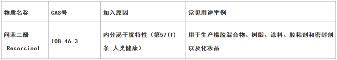 早在2020年2月法國根據 REACH 第 59 條第 3 款和附件 XV 提交了一份提案,由于間苯二酚(EC No. 203-585-2)的內分泌干擾特性而引起高度關注的物質,是可能對人類健康造成嚴重影響的科學證據。