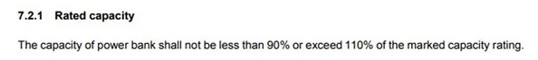 3. 容量測試要求,舊版標準要求測出容量值必須大于標示值,新版標準修改為要求測出容量值必須在標示值90%-110%范圍內。