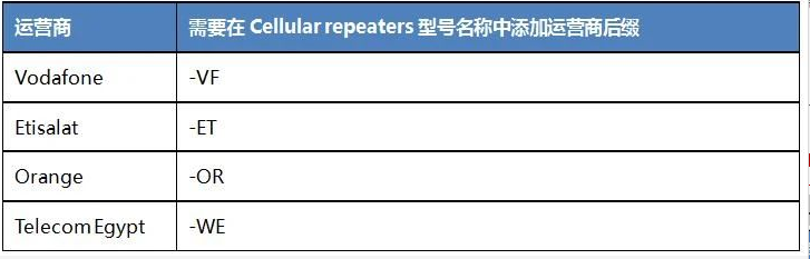 1) 必須在移動中繼器型號名稱中添加代表移動運營商的字母后綴,如下所示:以下要求: