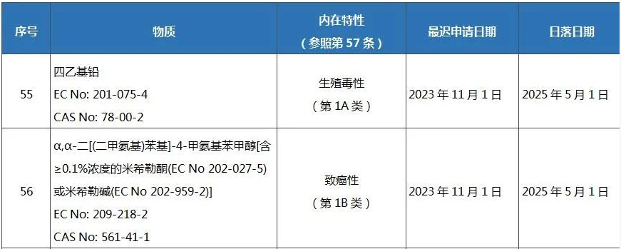 2022年4月11日,歐盟委員會在其官方公報(OJEU)發布法規(EU) 2022/586,將5項物質加入REACH附錄XIV授權物質清單,該法規將于官方公報公布后第20日開始生效。屆時,REACH法規授權物質清單將增至59項。